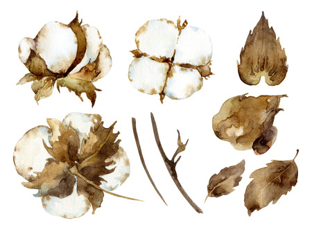 水彩綿花の枝植物手描きエコ製品イラスト白い背景に隔離ヴィンテージスタイルで綿花芽のボール植物のボールの性質のアイコン ふわふわのベクターアート素材や画像を多数ご用意 Istock